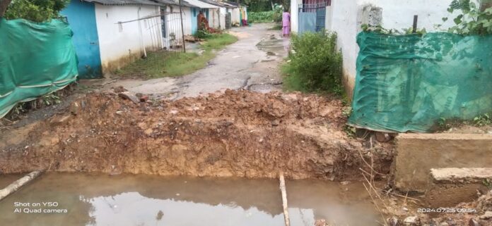 अवंतिका कालोनी में ठेकेदार ने भरी बारिश में नाली खोद कर छोड़ा ,स्कूली बच्चों के गिरने के आशंका ,वार्डवासियों में नाराजगी