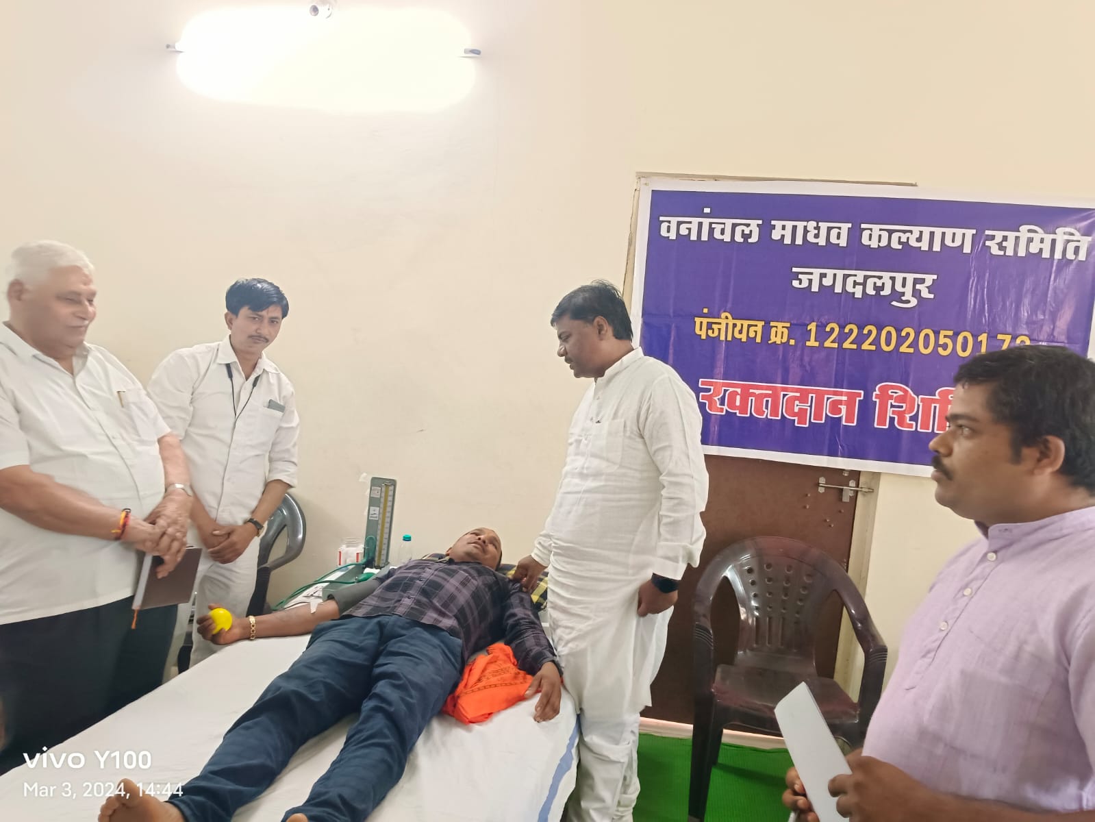 जगदलपुर । वनांचन माधव कल्याण सेवा समिति के तत्वाधान में रविवार को रक्तदान शिविर का आयोजन किया गया ,जिसमें नगर के आरएसएस स्वयंसेवको व गणमान्य लोगों ने 40 यूनिट रक्तदान किया,वनाचंल सेवा समिति के सचिव तुलसी बघेल ने बताया कि समय समय पर माधव कल्याण सेवा समिति के द्वारा सेवा कार्य समाज हित मे किया जाता रहा है ।