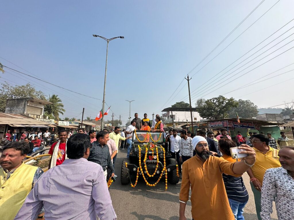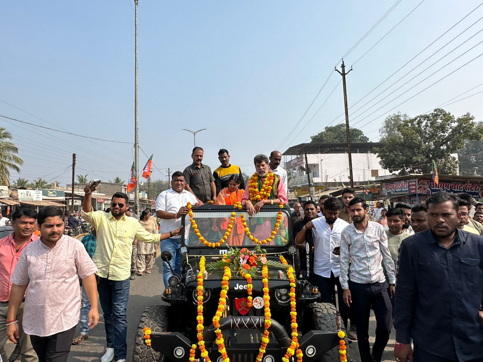 इसके बाद खुली जीप में सवार होकर बीजेपी प्रदेशाध्यक्ष ने रैली की शक्ल में नगर में रोड शो किया ।