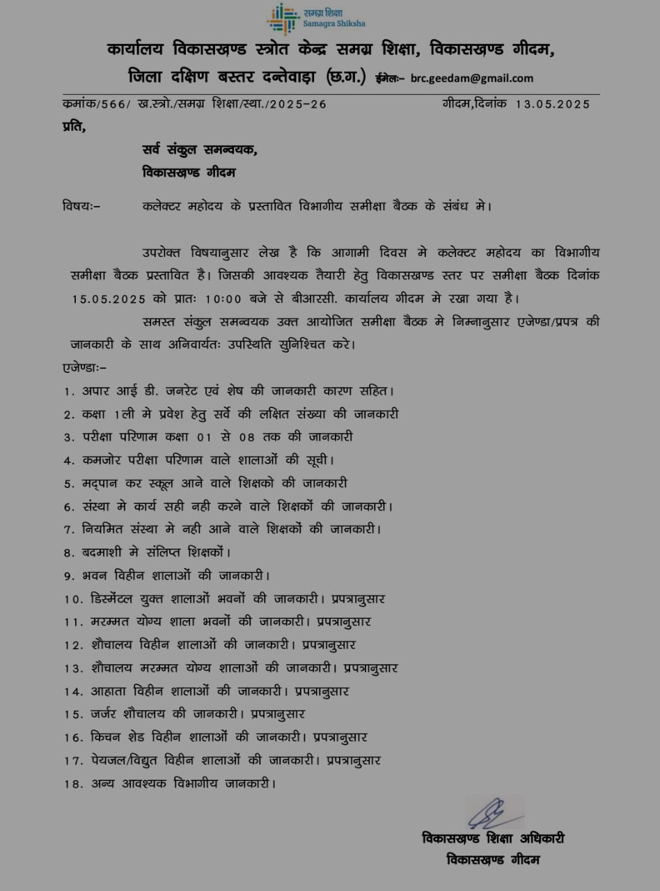 यह तो आने वाले दिनों में सामने आएगा, लेकिन इतना स्पष्ट है कि यह पत्र गीदम शिक्षा विभाग के लिए एक बड़ी फजीहत बनता जा रहा है।
