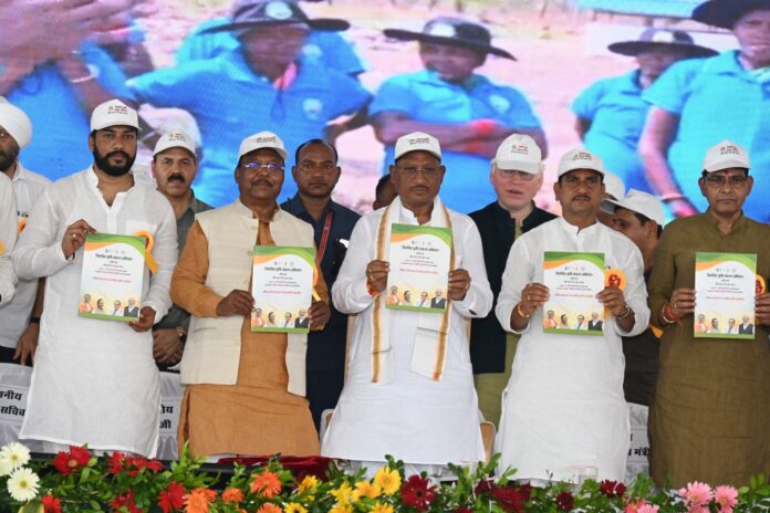 रायपुर 29 मई 2025/ मुख्यमंत्री श्री विष्णुदेव साय ने आज रायपुर जिले के ग्राम भैंसा में आयोजित सुशासन शिविर में भाग लिया। इस अवसर पर उन्होंने देशभर में प्रधानमंत्री श्री नरेंद्र मोदी के नेतृत्व में 29 मई से 12 जून तक चलने वाले “विकसित कृषि संकल्प अभियान” के लिए जागरूकता रथ को हरी झंडी दिखाकर शुभारंभ किया। उन्होंने प्रधानमंत्री आवास योजना के अंतर्गत निर्मित 110 पक्के मकानों की चाबियाँ हितग्राहियों को सौंपी।