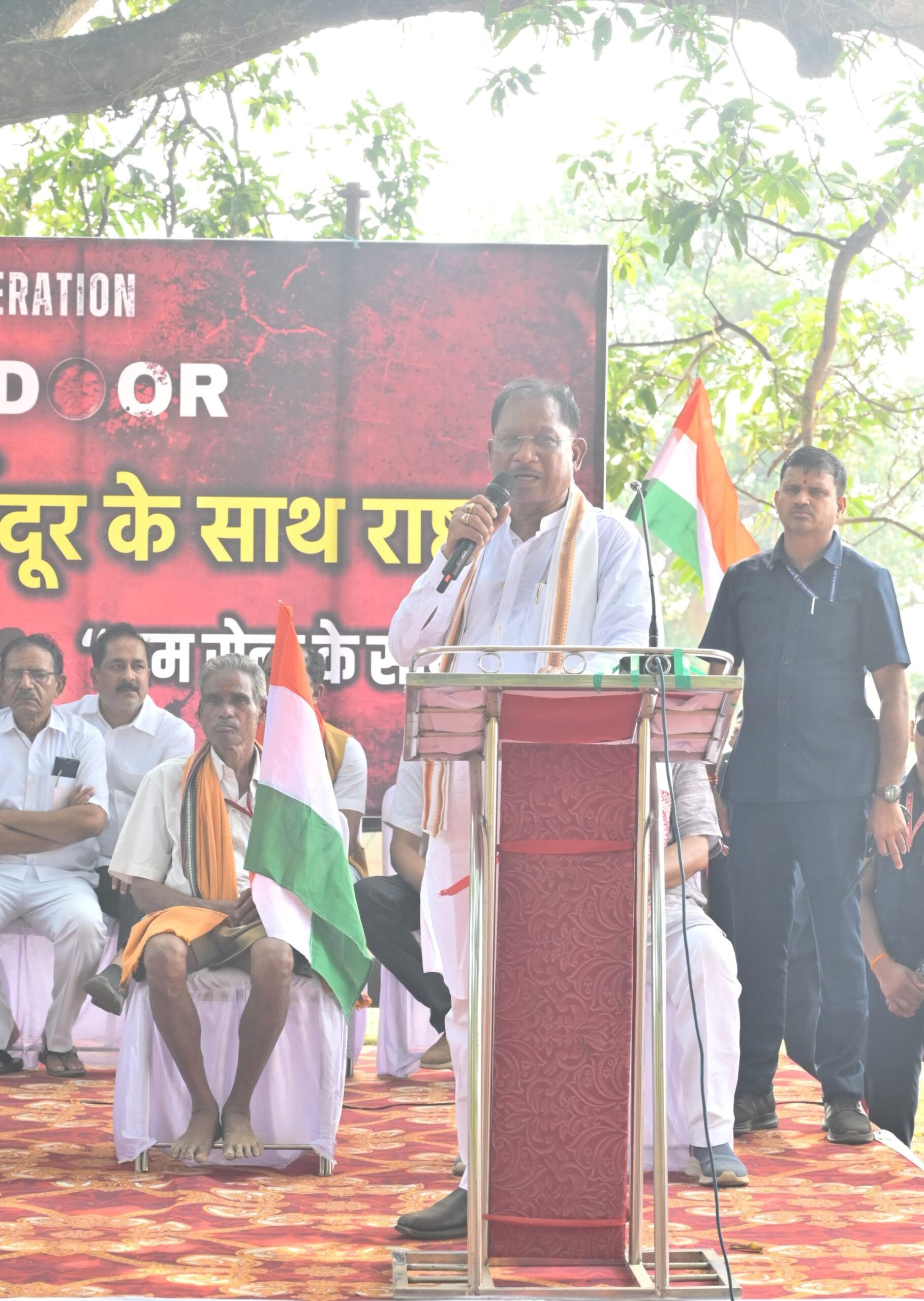 मुख्यमंत्री श्री साय ने कहा कि देश के प्रधानमंत्री के मार्गदर्शन में ‘ऑपरेशन सिंदूर’ के तहत भारतीय सेना ने अभूतपूर्व सफलता प्राप्त की है। यह अभियान उन शहीद जवानों को समर्पित है जिन्होंने अपनी शहादत से राष्ट्र का मान बढ़ाया है। उन्होंने कहा कि उरी हमले के बाद जिस प्रकार से सेना ने जवाब दिया, उसी प्रकार हाल ही में 22 अप्रैल को जम्मू-कश्मीर के पहलगाम में पाकिस्तान समर्थित आतंकियों द्वारा की गई कायरतापूर्ण घटना का करारा जवाब दिया। मुख्यमंत्री ने पहलगाम की घटना में छत्तीसगढ़ के सपूत सहित अनेक लोगों की निर्ममहत्या का उल्लेख करते हुए उन्हें श्रद्धांजलि दी।