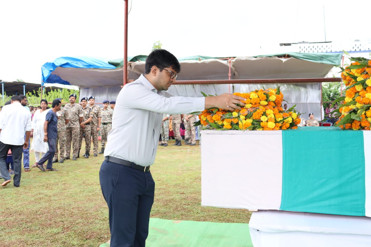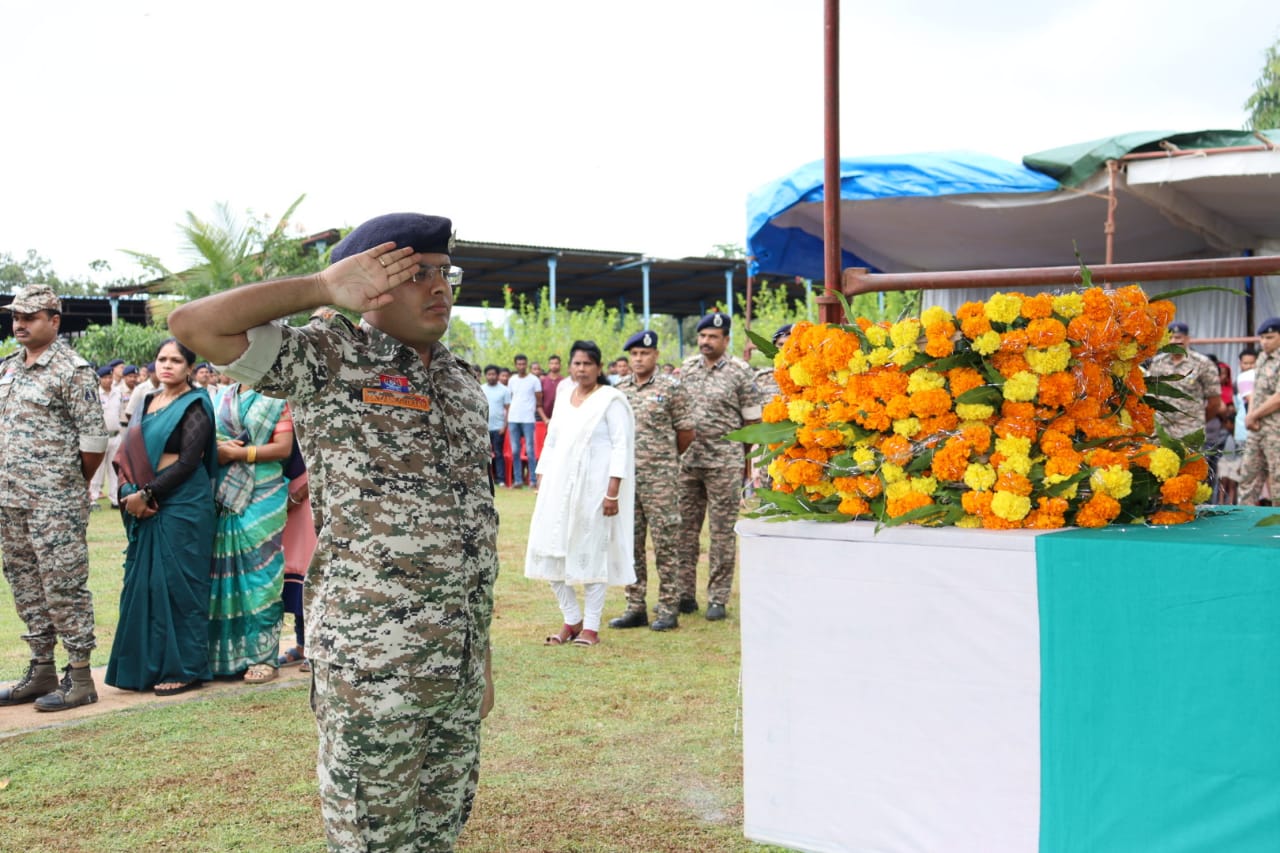 शहीद जवान का पार्थिव देह सोमवार को रक्षित केंद्र बीजापुर स्थित शहीद वाटिका लाया गया, जहां गमगीन माहौल में उन्हें गार्ड ऑफ ऑनर और अंतिम सलामी दी गई।