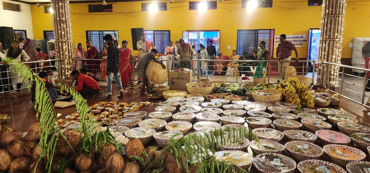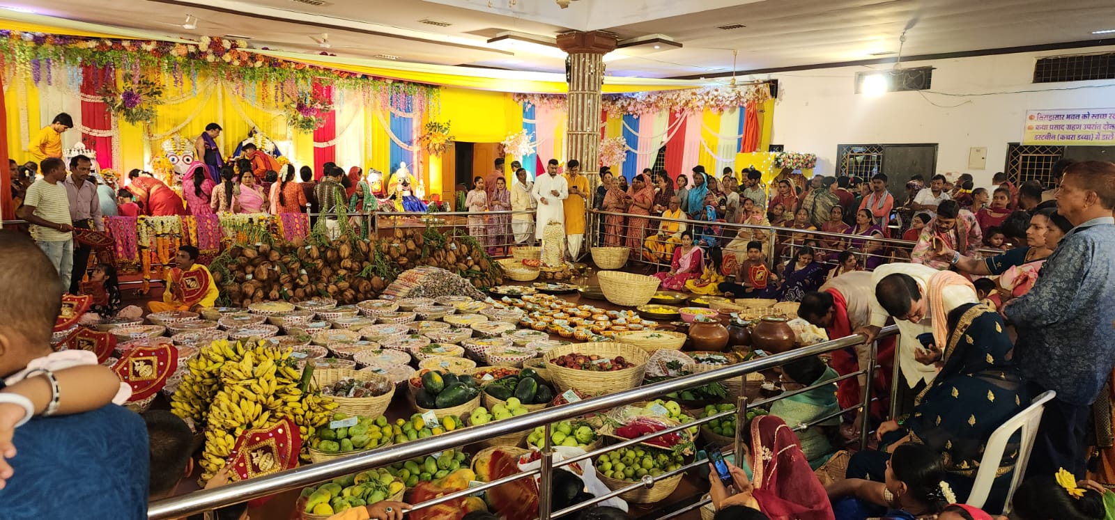 जगदलपुर । बस्तर गोंचा महापर्व के रियासतकालीन परंपरानुसार आज शाुक्रवर देर शाम को गुडिचा मंदिर-जनकपुरी, सिरहासार भवन में 360 घर आरण्यक ब्राह्मण समाज के द्वारा भगवान जगन्नाथ स्वामी को 56 भोग का अर्पण किया गया, 56 भोग का अर्पण में 360 घर आरण्यक ब्राह्मण समाज के सदस्य ओंकार पांडे का परिवार का योगदान लगातार चला रहा है। 360 घर आरण्यक ब्राह्मण समाज के ब्राह्मणों पंडित उदयनाथ पानीग्राही एवं शुभांशु पाढ़ी के माध्यम से पूरे विधि-विधान के साथ 56 भोग के अर्पण का पूजा विधान संपन्न करवाया गया।