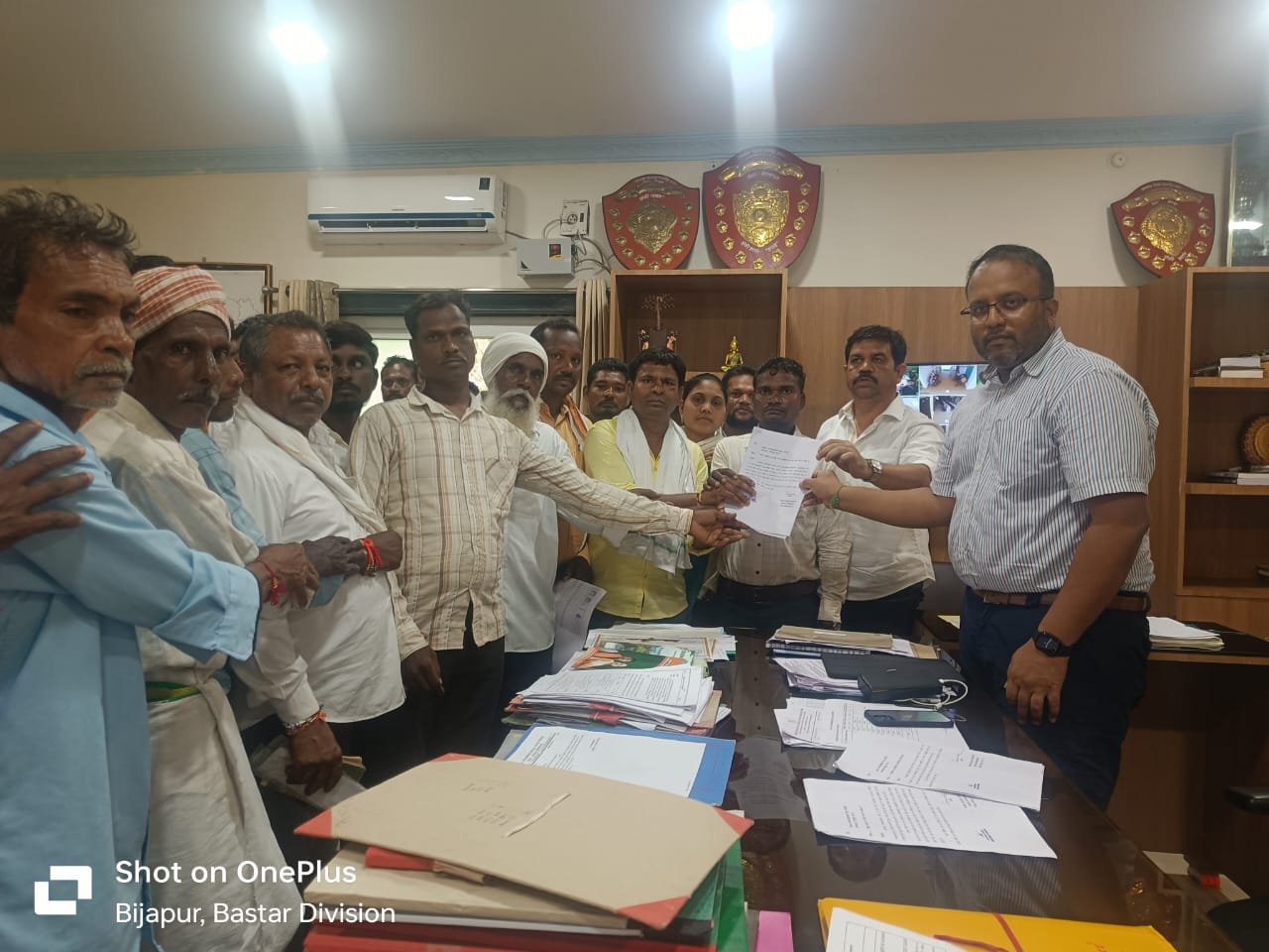 इसके साथ ही भद्राकाली, अटूकपल्ली, रैगुड़ा, तारूड़, अन्नारम के ग्रामीण किसानों ने बीजापुर के विधायक विक्रम मंडावी को भी एक ज्ञापन सौंपा है ग्रामीण किसानों ने विधायक विक्रम मंडावी को सौंपे गए ज्ञापन में कहा है कि ग्रामीणों द्वारा वनभूमि पर विगत् 15 वर्षों से खेती कर अपना जीवन यापन करते आ रहे हैं। वर्तमान में वन विभाग के कर्मचारियों के द्वारा बदसलूखी करते हुए खेती करने से किसानों को जबरन रोका जा रहा है और अपनी जमीन से बेदखल कर पालतू मवेशी बैल एवं हल को जब्त किया जा रहा है। इसलिए वर्षों से काबिज वनभूमि का वन अधिकार पट्टा दिलाया जाए।