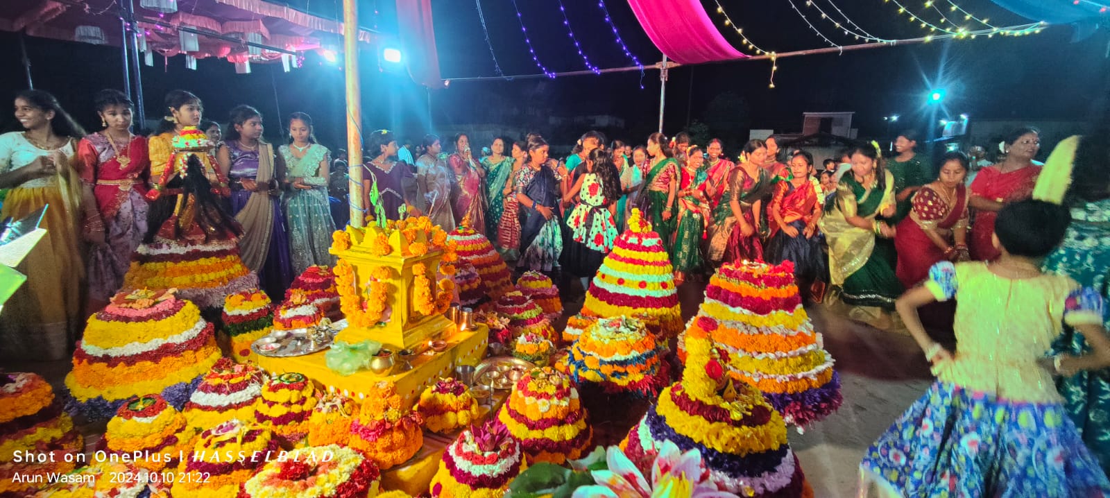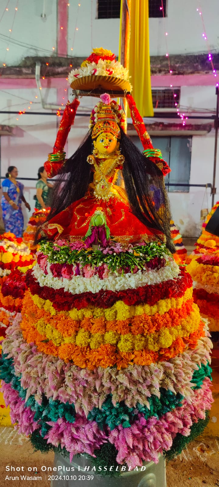 जिसके लिए महिलाएं रंगबी रंगे तरह-तरह के फूलों को इकट्ठा कर उन फूलों को गूंथ कर गोल एक बड़ी सी थाली में गोलाकार रूप में बतुकम्मा को बनाया जाता है ।और सबसे ऊपर में मां गौरी का स्थापना कर पूजा अर्चना कर संध्या काल में सभी सुहागिन महिलाएं बतुकम्मा को इस तुलसी चबूतरा के पास रखकर मां गौरी जी का गीतों का गायन करते हुए चबूतरे के चारों ओर परिक्रमा करते हैं ।मां दुर्गा जी का नौ रूपों की पूजा की तरह माता गौरी जी का भी नवरात्रि नव दिन तक इस प्रकार का आयोजन होता है ।इस बीच अलीगिना बतु कम्मा के नाम से (अर्यम्)अर्थात उसे दिन बतुकम्मा को नहीं बनाया जाता है और खेला भी नहीं जाता है, अंतिम दिन को सद्दूला बतुकम्मा कहा जाता है ।