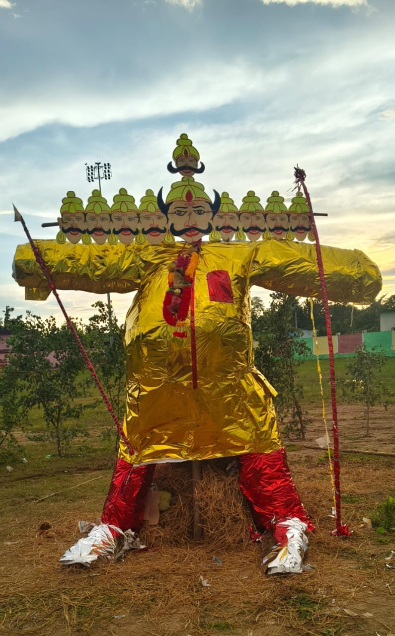 विजयदशमी की सुबह के दिन मां दुर्गा और सरस्वती की मूर्तियों को वाहनों को सजावट उन वाहनों में माताओं को बैठाकर बाजा गाजा के साथ भक्तिजनों के नृत्य के साथ नगर भ्रमण किया जाता है। नगरवासी माताओं का दर्शन करते हैं।तत्पश्चात तीमेड इंद्रावती नदी में मूर्तियों का विसर्जन किया जाता है।इस दरमियान पूरा नगर के गली-गली एवम पूरा क्षेत्र में पूर्ण रूप से भक्तिमय वातावरण बना रहता है । शाम को दशहरा त्योहार की तैयारी हेतु स्थानीय मिनी स्टेडियम मैदान में रावण दहन के लिए तैयारी किया जाता है,मिनी स्टेडियम मैदान में नवयुवकों के द्वारा रावण का एक विशाल पुतला बनाया जाता है ।