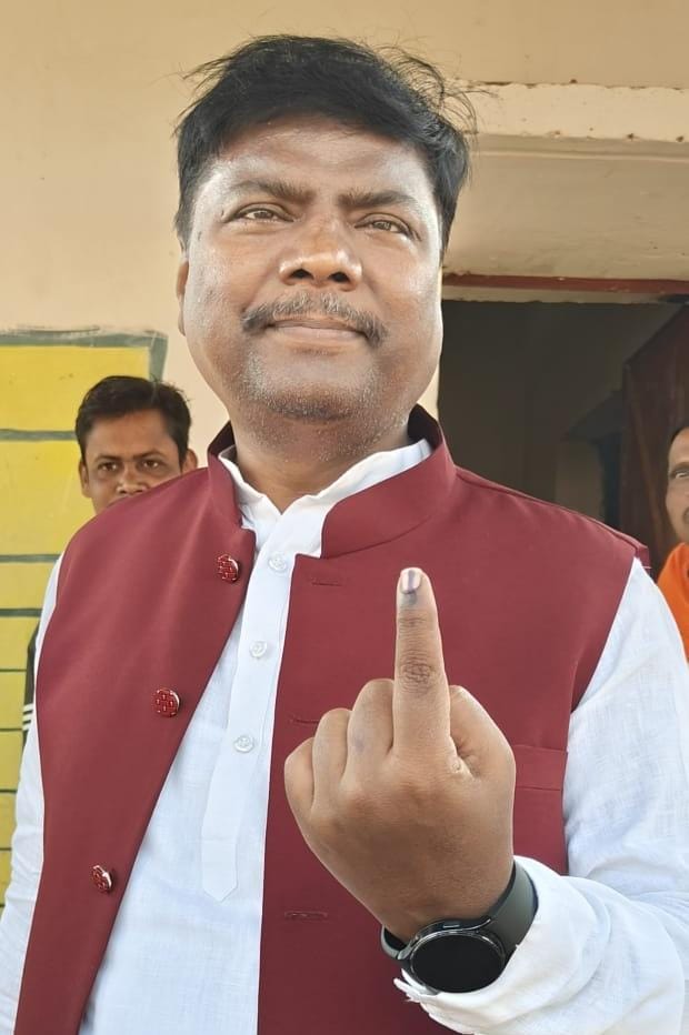मंत्री केदार कश्यप ने फरसागुडा स्थित पूर्व माध्यमिक शाला में किया मतदान