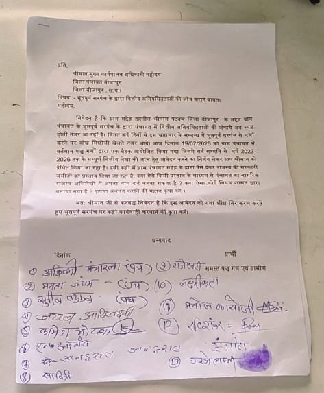 क्या प्रशासन इन गंभीर आरोपों की निष्पक्ष जांच करेगा और दोषियों को सजा दिलवाएगा? सभी दोषियों के खिलाफ सख्त कार्रवाई और पंचायत के फंड की रिकवरी की जायेगी अब देखने वाली बात होगी।
