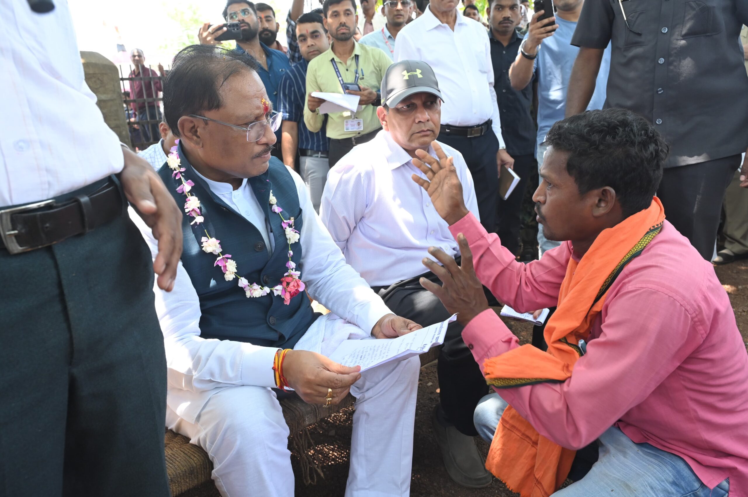 मुख्यमंत्री ने बरगद की छांव में खाट पर बैठ जाना ग्रामीणों का हाल-चाल, विद्युत सब स्टेशन, हायर सेकंडरी स्कूल भवन और प्राचीन मंदिर के सौंदर्यीकरण की घोषणा