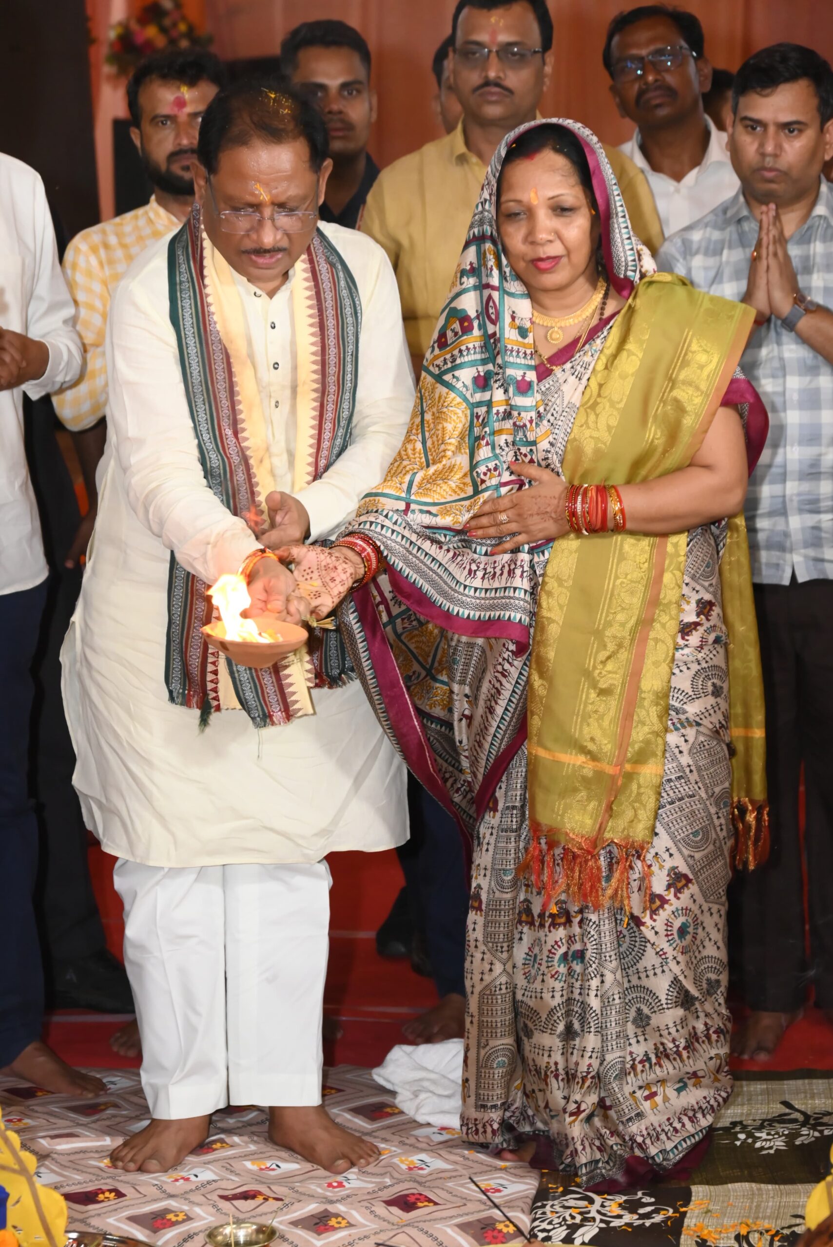 जशपुरनगर 22 मई 2025/ मुख्यमंत्री श्री विष्णु देव साय और उनकी धर्मपत्नी श्रीमती कौशल्या साय ने बुधवार को कांसाबेल विकास खंड के ग्राम दोकड़ा के प्राचीन श्री जगन्नाथ मंदिर का जीर्णोद्धार पश्चात प्राण प्रतिष्ठा कार्यक्रम में शामिल हुई उन्होंने भगवान जगन्नाथ की पूजा अर्चना कर प्रदेश की सुख समृद्धि और खुशहाली की कामना की मुख्यमंत्री ने दोकड़ा में 24 लाख 74 हजार की लागत से बनने वाले महतारी सदन का भूमि पूजन किया मुख्यमंत्री ने दोकड़ा के श्री जगन्नाथ मंदिर समिति के सदस्यों धन्यवाद देते हुए उनके कार्यों की सराहना की ग्रामवासी धर्म कर्म के कार्यों में बढ़-चढ़कर भाग ले रहे हैं।