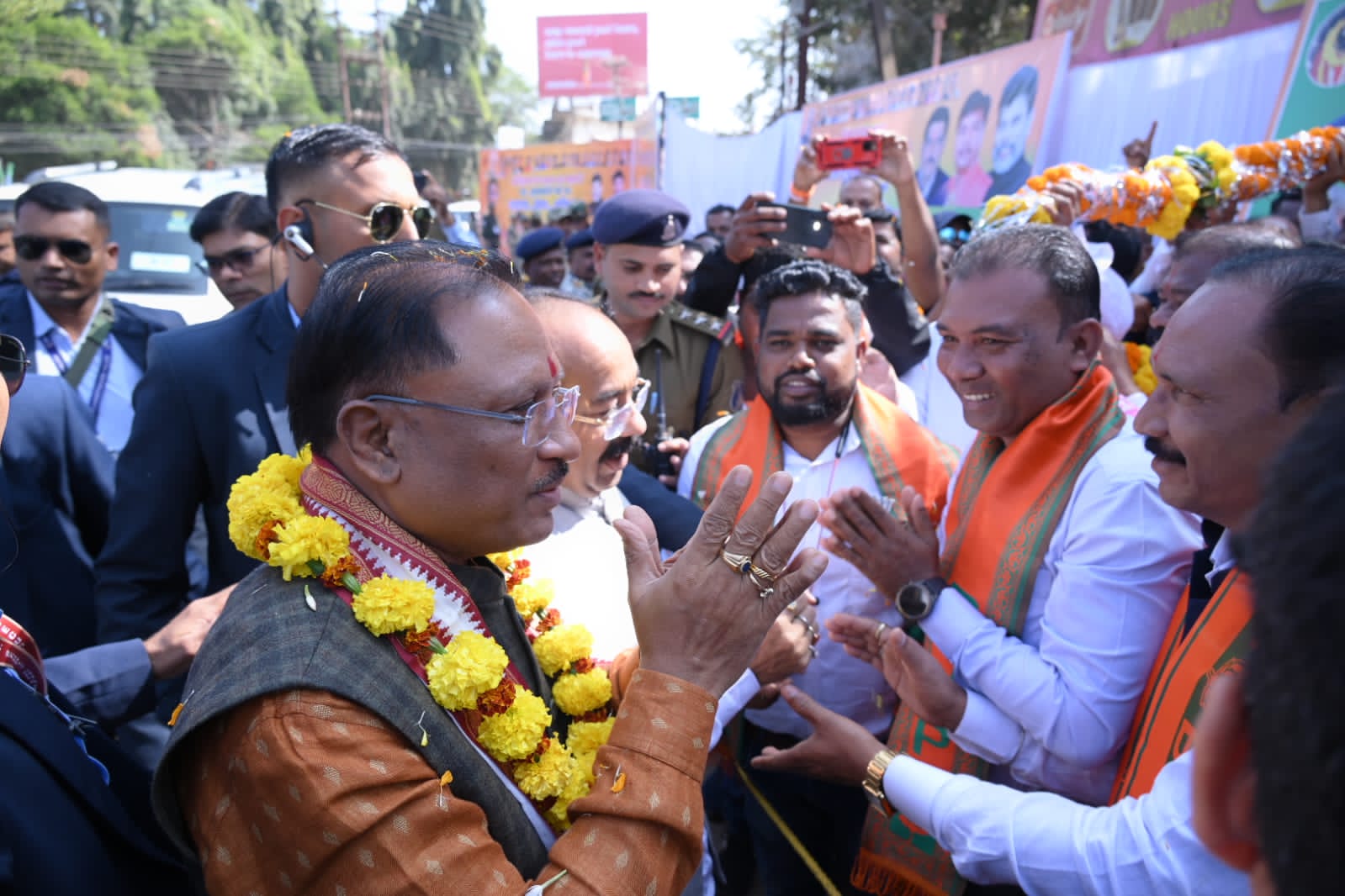 जगदलपुर । शनिवार को बीजेपी के कार्यकर्ता सम्मान समारोह में सम्मिलित होने मुख्यमंत्री के तौर पर पहली बार जगदलपुर पहुंचे विष्णुदेव साय का बीजेपी कार्यकर्ताओं ने जगह जगह भव्य स्वागत किया।