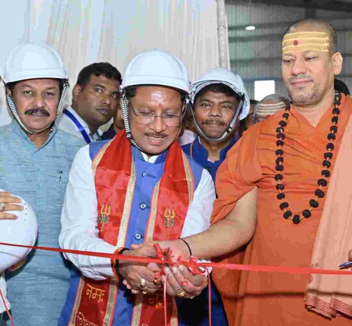 रायपुर 29 जून 2025/ मुख्यमंत्री श्री विष्णु देव साय ने आज दुर्ग जिले के पाटन विधानसभा के अंतर्गत ग्राम जामगांव (एम) में छत्तीसगढ़ राज्य लघु वनोपज सहकारी संघ मर्यादित द्वारा निर्मित आधुनिक आयुर्वेदिक औषधि प्रसंस्करण इकाई एवं केन्द्रीय भंडार गृह परिसर तथा स्प्रेयर बायोटेक प्राइवेट लिमिटेड द्वारा पब्लिक प्राइवेट पार्टनरशिप अंतर्गत निर्मित हर्बल एक्सट्रेक्शन इकाई का लोकार्पण किया।
