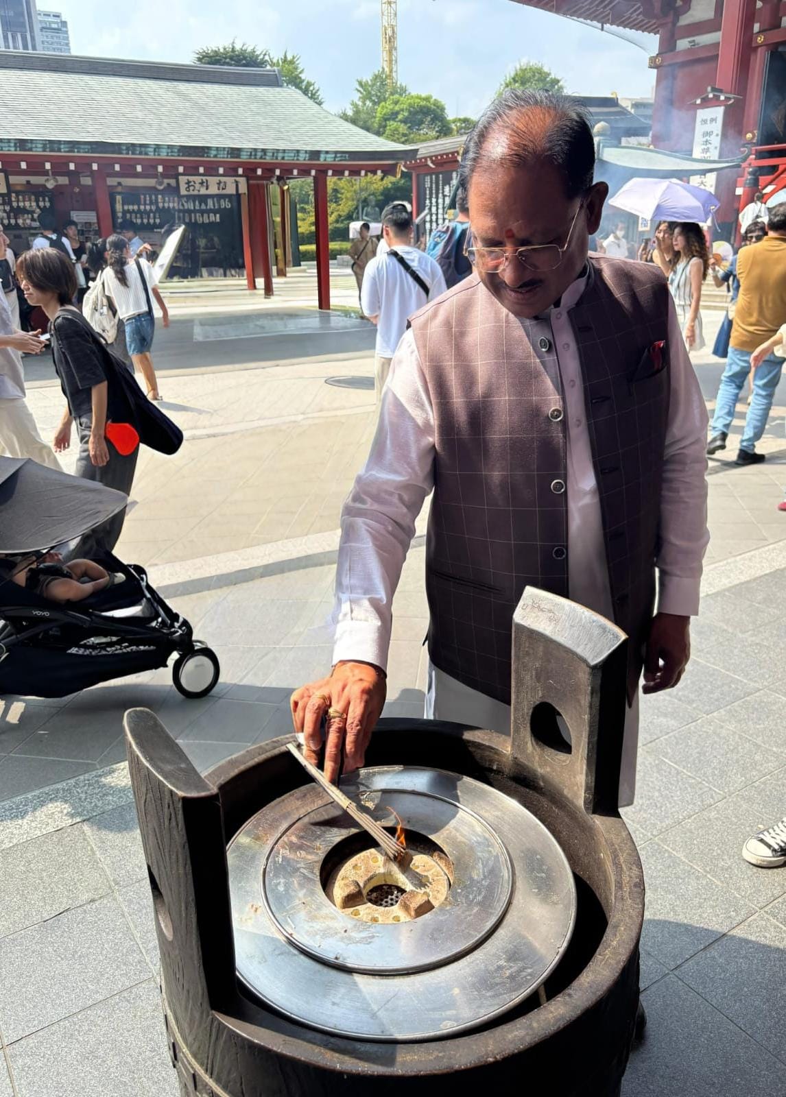 रायपुर, 22 अगस्त 2025/छत्तीसगढ़ के मुख्यमंत्री श्री विष्णुदेव साय ने जापान पहुंचने के बाद सबसे पहले जापान की राजधानी टोक्यो में स्थित ऐतिहासिक असाकुसा मंदिर के दर्शन किए। टोक्यो का यह सबसे प्राचीन और प्रतिष्ठित मंदिर शांति और सामर्थ्य का प्रतीक माना जाता है। मुख्यमंत्री श्री साय ने मंदिर में पूजा-अर्चना कर छत्तीसगढ़ की 3 करोड़ जनता की खुशहाली, समृद्धि और निरंतर प्रगति की कामना की। उन्होंने कहा कि यह मंदिर मानवता को शांति और शक्ति का संदेश देता है और यही भाव छत्तीसगढ़ की जनता की आकांक्षाओं में भी झलकता है।