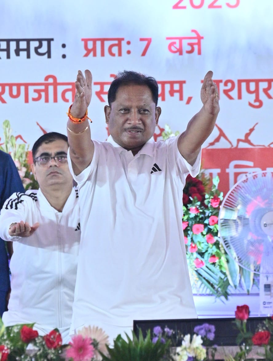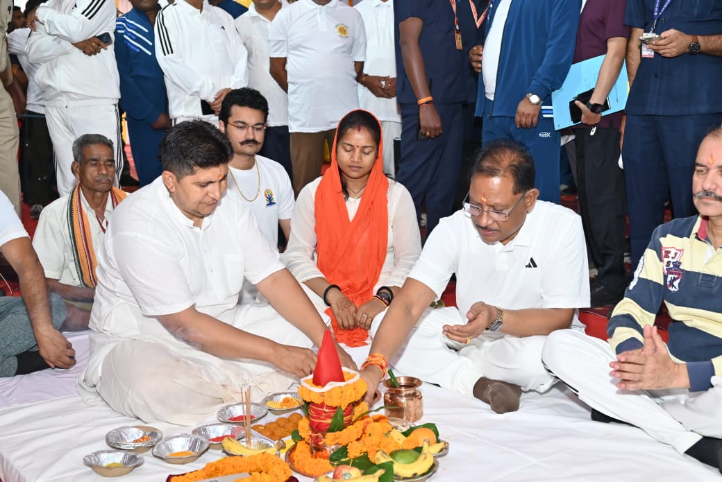 जशपुरनगर 21 जून 2025/मुख्यमंत्री श्री विष्णु देव साय ने आज जिला मुख्यालय जशपुर में हजारों लोगों के साथ योगाभ्यास किया। उन्होंने अंतरराष्ट्रीय योग दिवस की बधाई एवं शुभकामनाएं दी। मुख्यमंत्री ने कहा की योग हमारे देश के लिए कोई नई विधा नहीं है। सनातन काल से योग हमारे जीवन में चला आ रहा है। हमारे ऋषि मुनियों ने इसका इजाद किया है। प्रधानमंत्री श्री नरेंद्र मोदी ने विश्व पटल पर योग की महत्ता को स्थापित किया। संयुक्त राष्ट्र महासभा में वर्ष 2014 में आवाज उठाई और इसे विश्व स्तर पर स्वीकृति दिलाई। वर्ष 2015 से प्रति 21 जून को विश्व योग दिवस मनाया जा रहा है। हम सब लोगों के लिए बड़े सौभाग्य की बात है कि संयुक्त राष्ट्र महासभा सहित 175 देशों में योग की आवाज गूंज रही है। मुख्यमंत्री के साथ जनप्रतिनिधिगण, स्कूलों बच्चों, आम नागरिकों, अधिकारियों और कर्मचारियों ने उत्साह से योगाभ्यास किया। योग प्रशिक्षक के दौरा चक्र आसन, अर्ध चक्र आसन, कपाल भारती, अनुलोम-विलोम, प्राणायाम, वज्राशन सहित विभिन्न आसन से योगाभ्यास करवाया गया।