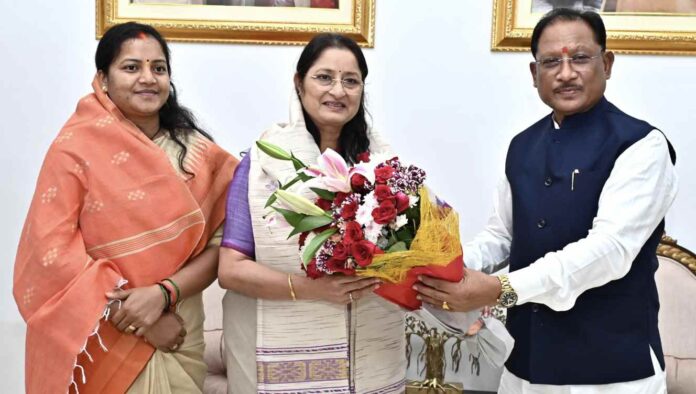 रायपुर 17 सितम्बर 2025/ मुख्यमंत्री श्री विष्णु देव साय से आज राजधानी रायपुर स्थित मुख्यमंत्री निवास में केंद्रीय महिला एवं बाल विकास मंत्री श्रीमती अन्नपूर्णा देवी ने सौजन्य भेंट की।