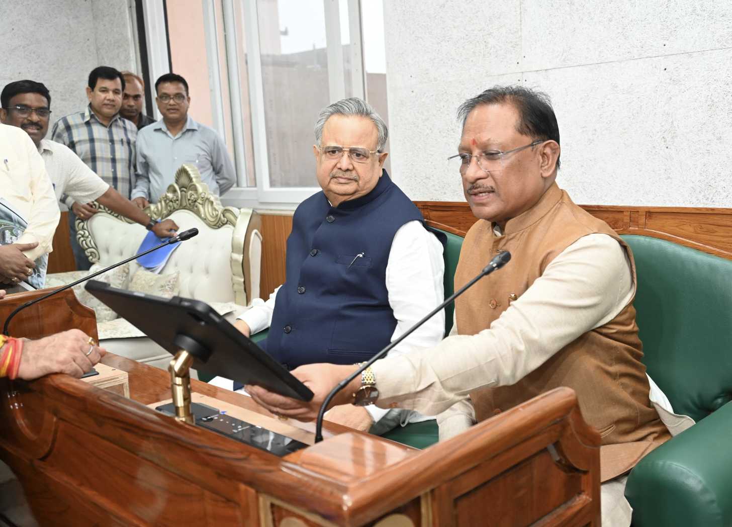 मुख्यमंत्री विष्णुदेव साय एवं विधानसभा अध्यक्ष डॉ. रमन सिंह ने किया नवीन विधानसभा भवन का निरीक्षण