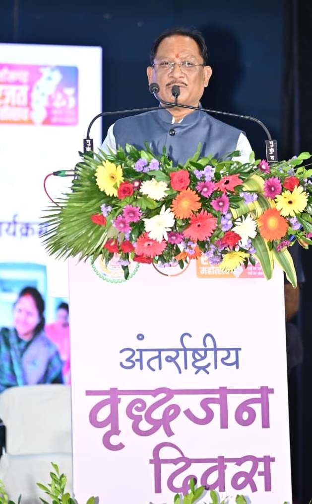 रायपुर, 01 अक्टूबर 2025/ मुख्यमंत्री श्री विष्णु देव साय ने कहा कि वृद्धजन हमारे मार्गदर्शक और अमूल्य संस्कृति के वाहक हैं। वृद्धजनों की देखभाल सरकार और समाज दोनों की साझी जिम्मेदारी है। केंद्र और राज्य सरकार वरिष्ठ नागरिकों के पेंशन, स्वास्थ्य, सामाजिक सुरक्षा और सम्मानपूर्ण जीवन के लिए समर्पित योजनाओं को लगातार मजबूत बना रही है। मुख्यमंत्री आज राजधानी रायपुर के इंदिरा गांधी कृषि विश्वविद्यालय परिसर में स्थित कृषि मंडपम में अंतर्राष्ट्रीय वृद्धजन दिवस के राज्य स्तरीय आयोजन को मुख्य अतिथि के रूप में संबोधित कर रहे थे।