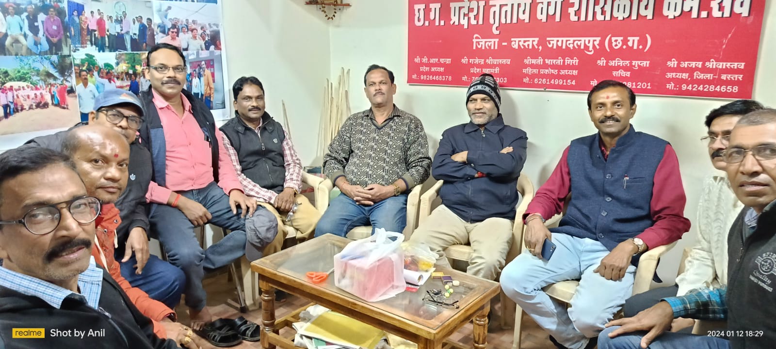 इसी परिपेक्ष्य में बस्तर जिला में आज जगदलपुर के संघ कार्यालय में महामंत्री गजेंद्र श्रीवास्तव ,प्रांतीय सचिव अतुल शुक्ला ,जिला अध्यक्ष अजय श्रीवास्तव ,सचिव अनिल प्रसाद गुप्ता, कोषाध्यक्ष आर.पी .मिश्रा, उपाध्यक्ष विजय विश्वास, मनोज कुमार, संजय चौहान, सुभाष पांडे विकासखंड अध्यक्ष प्रमोद पांडे, राजेंद्र पांडे, तारा सिंह फूटान, जी.एल .यादव सी.आर. नाग आदि कर्मचारी एवं पदाधिकारी उपस्थित रहे सभी पदाधिकारी अपने साथी कर्मचारियों के साथ संध्या 4:30 बजे पानी टंकी के पास एकत्र होने का निर्णय लिया है ।