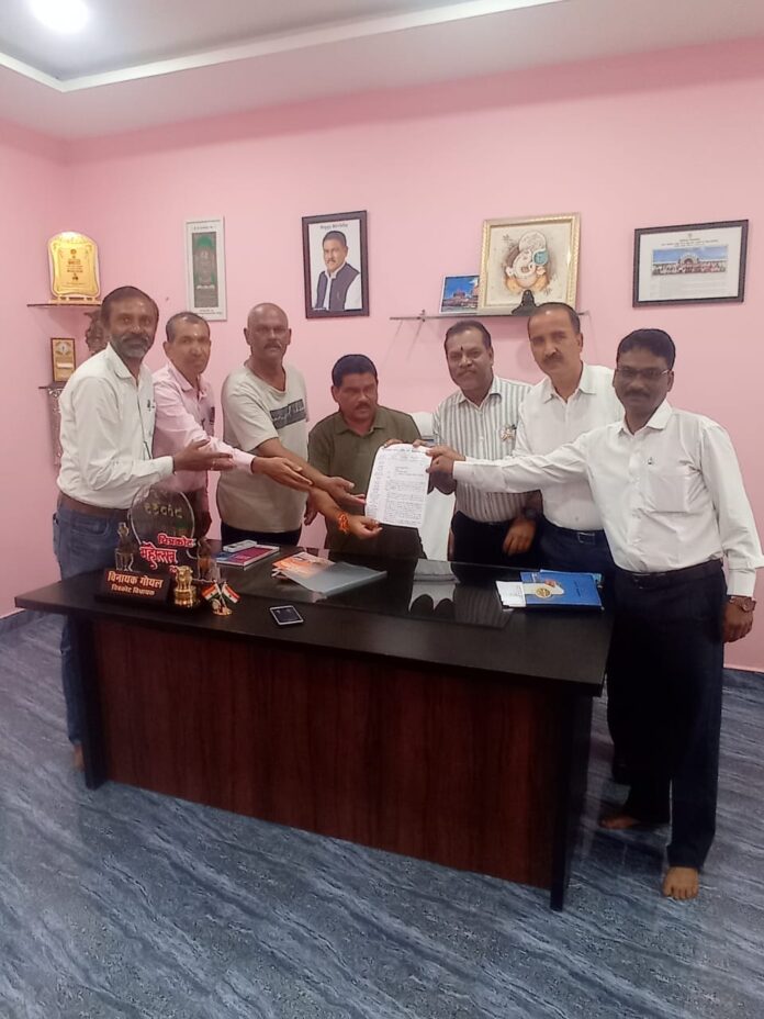 द्वितीय चरण आंदोलन के तहत स्थानीय जनप्रतिनिधियों को ज्ञापन सौंपे जाने के फलस्वरुप आज संघ के प्रदेश महामंत्री गजेंद्र श्रीवास्तव तथा जिला अध्यक्ष अजय श्रीवास्तव के नेतृत्व में विनायक गोयल विधायक चित्रकोट को उनके निज निवास में जाकर प्रदेश के कर्मचारियों को 4% महंगाई भत्ता देय तिथि से देने सहित 10 सूत्रीय मांगों का ज्ञापन तथा प्रदेश के कर्मचारियों के लिए मोदी की गारंटी पर अमल करने बाबत मांग पत्र सौंपा गया। विधायक विनायक गोयल ने मुख्यमंत्री को पत्र भेजने का आश्वासन दिया ।